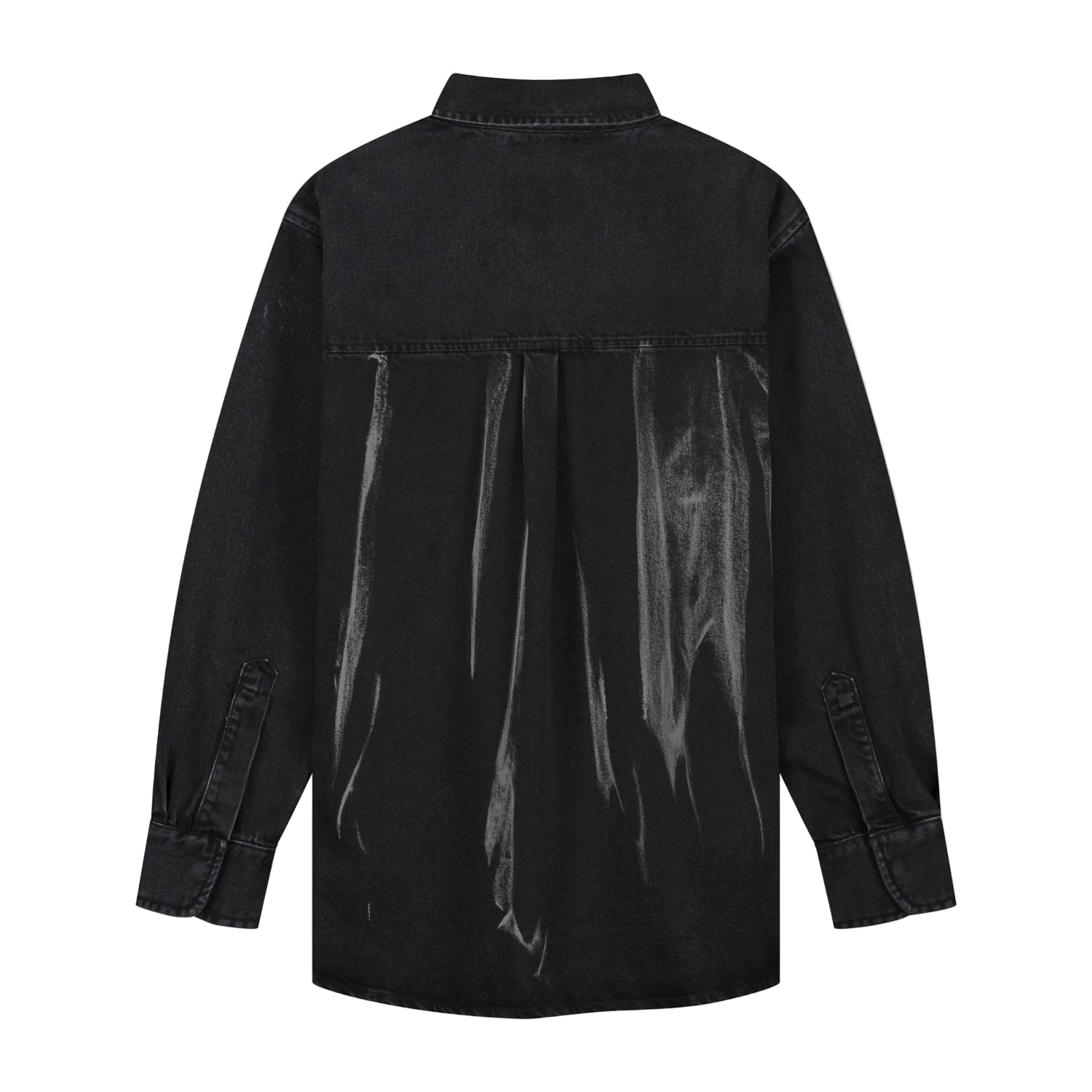 The denim shirt reworks classic workwear through a refined lens. Crafted from premium cotton in a black wash, it’s detailed with white painted markings all over. The relaxed fit and below-hip length offer easy layering, finished with a hidden button placket, a chest pocket and a branded loop on the back. Complete the look with the matching pants.