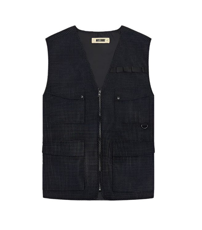 Presenta maniche corte, chiusura con cerniera a tutta lunghezza, due tasche con patta sul petto con chiusura a bottone, due ampie tasche inferiori con patta, passanti orizzontali sul petto e anello a D. Qualità: 100% nylon
