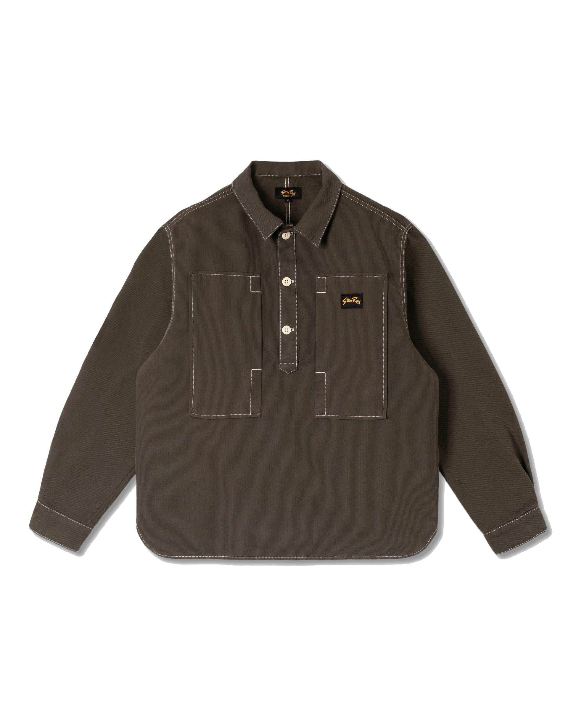 The Painters Pop Over Shirt is a modern take on classic workwear. It features a boxy, relaxed fit and a versatile pop-over design that’s easy to wear and layer. Large side-entry patch pockets on the front are accessed across the chest and the scalloped side seams cut a clean silhouette over pants.
