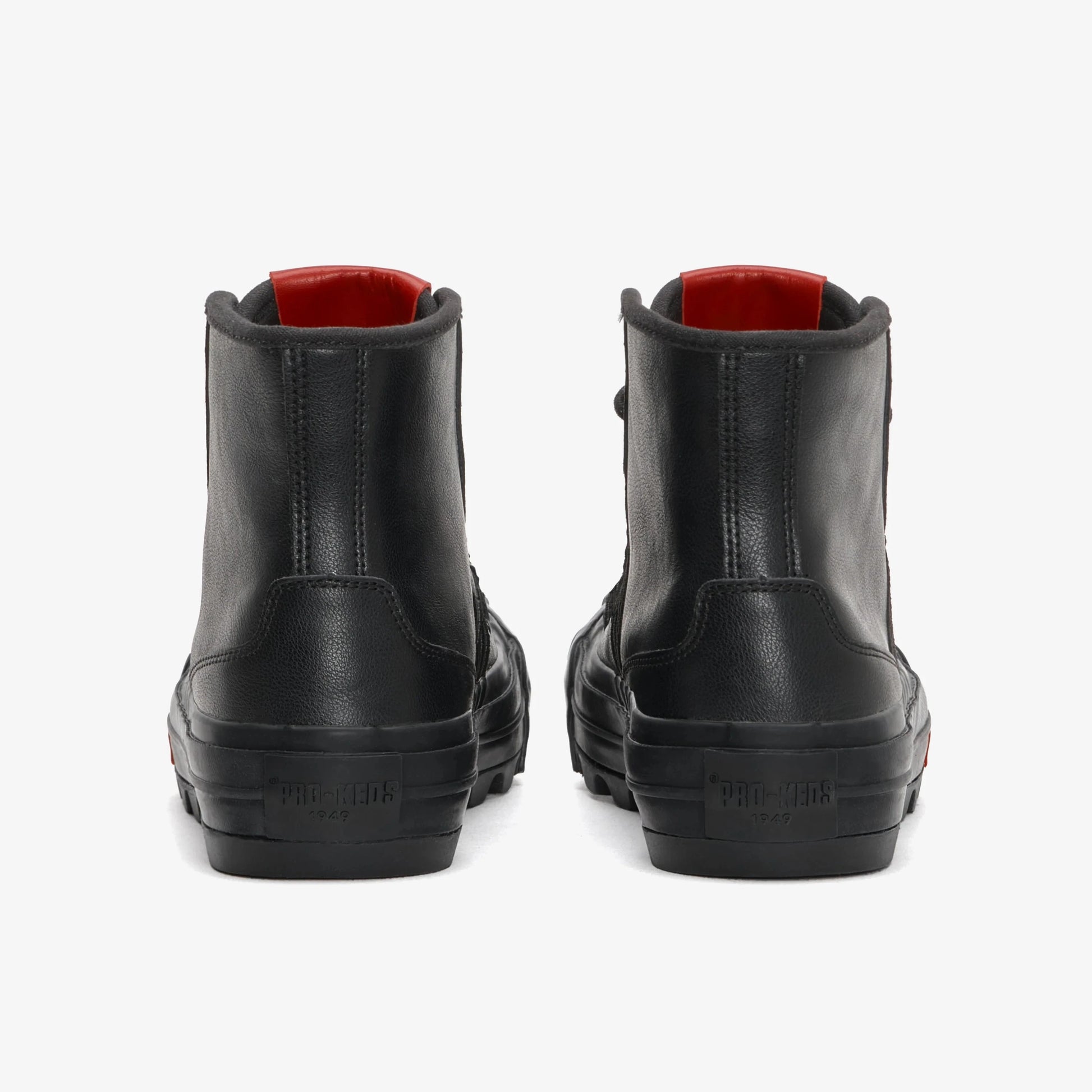 Sneaker high-top in pelle caratterizzata da cinque strati di suola vulcanizzata, pensata per offrire la massima aderenza, flessibilità e struttura.
